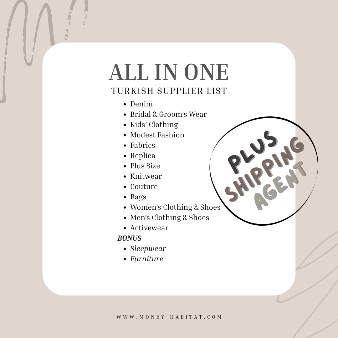 Une fois acheté, vous recevrez un accès exclusif à l'intégralité de mon répertoire de fournisseurs TURCS , couvrant :